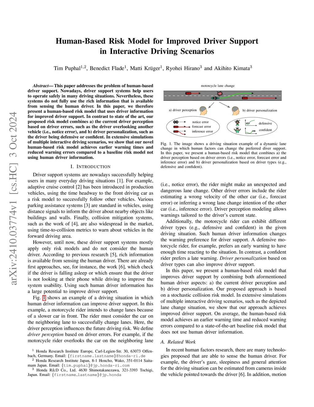 Human-Based Risk Model for Improved Driver Support in Interactive