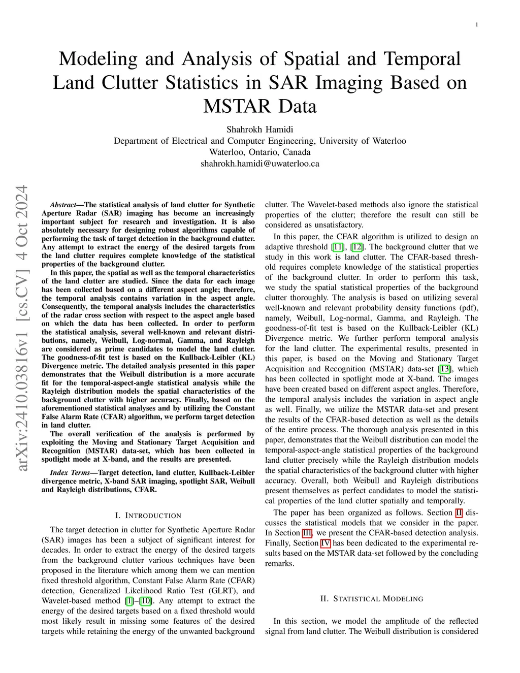 Modeling and Analysis of Spatial and Temporal Land Clutter Statistics in SAR Imaging Based on MSTAR Data