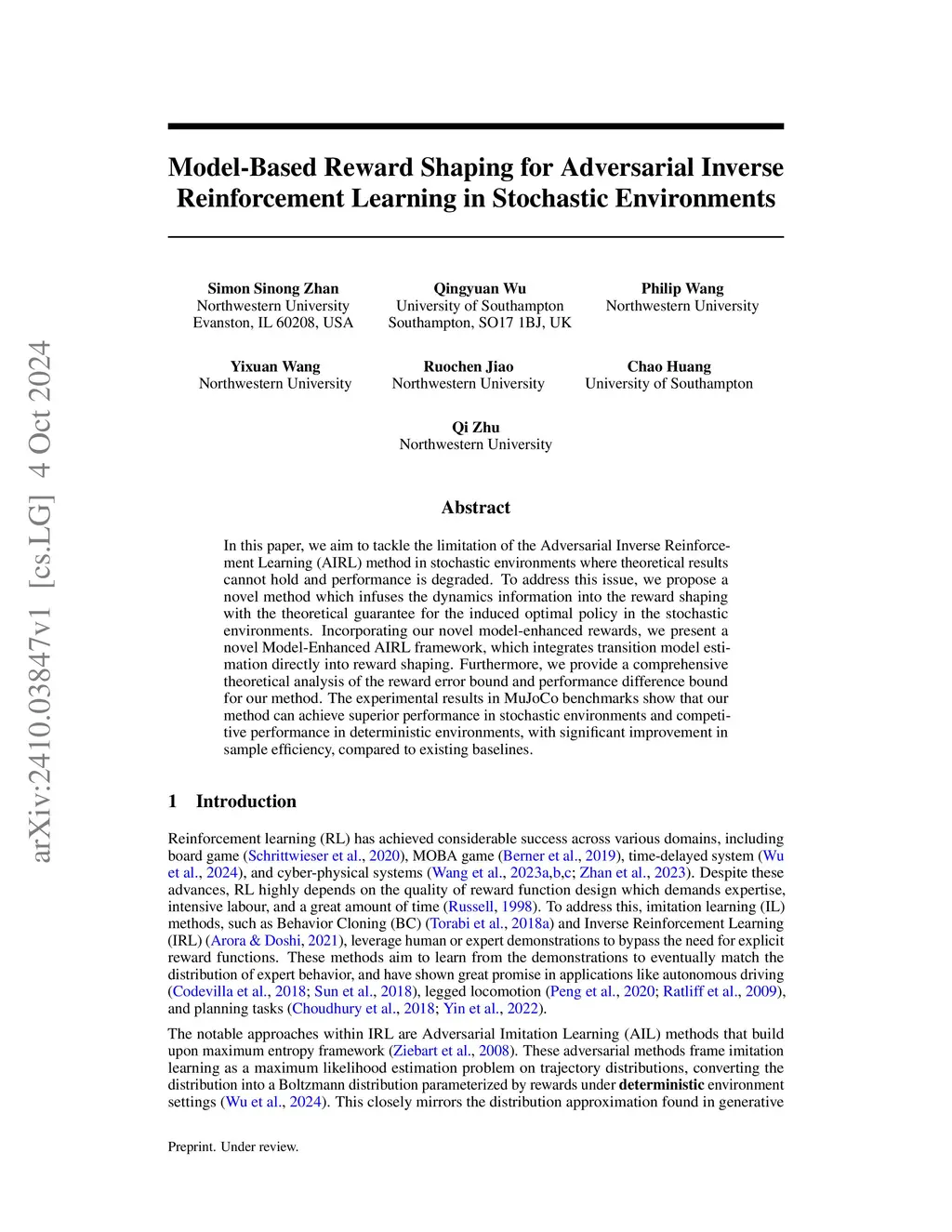 In this paper, we aim to tackle the limitation of the Adversarial Inverse Reinforcement Learning (AIRL) method in stochastic environments where theoretical results cannot hold and performance is degraded. To address this issue, we propose a novel method which infuses the dynamics information into the reward shaping with the theoretical guarantee for the induced optimal policy in the stochastic environments. Incorporating our novel model-enhanced rewards, we present a novel Model-Enhanced AIRL framework, which integrates transition model estimation directly into reward shaping. Furthermore, we provide a comprehensive theoretical analysis of the reward error bound and performance difference bound for our method. The experimental results in MuJoCo benchmarks show that our method can achieve superior performance in stochastic environments and competitive performance in deterministic environments, with significant improvement in sample efficiency, compared to existing baselines.