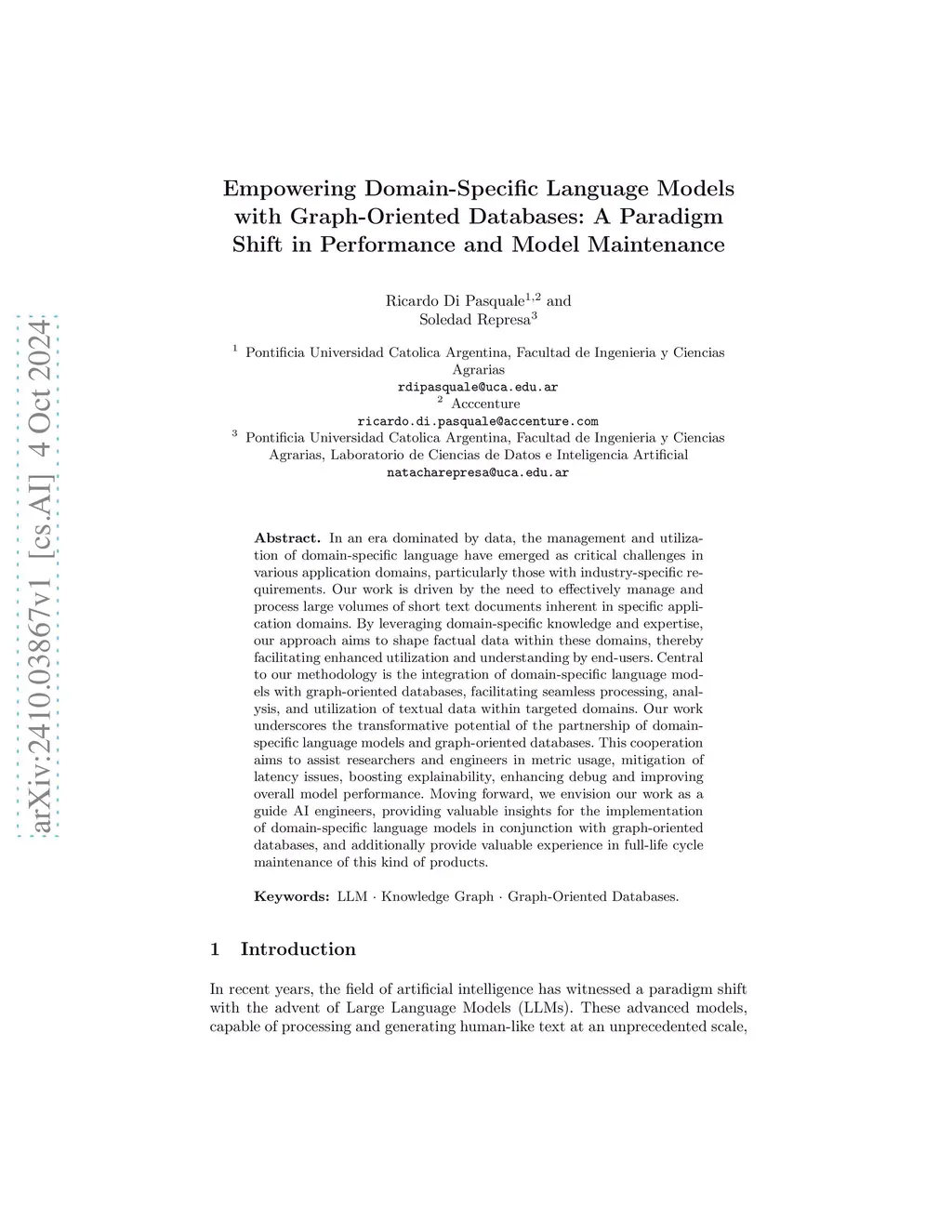 In an era dominated by data, the management and utilization of domain-specific language have emerged as critical challenges in various application domains, particularly those with industry-specific requirements. Our work is driven by the need to effectively manage and process large volumes of short text documents inherent in specific application domains. By leveraging domain-specific knowledge and expertise, our approach aims to shape factual data within these domains, thereby facilitating enhanced utilization and understanding by end-users. Central to our methodology is the integration of domain-specific language models with graph-oriented databases, facilitating seamless processing, analysis, and utilization of textual data within targeted domains. Our work underscores the transformative potential of the partnership of domain-specific language models and graph-oriented databases. This cooperation aims to assist researchers and engineers in metric usage, mitigation of latency issues, boosting explainability, enhancing debug and improving overall model performance. Moving forward, we envision our work as a guide AI engineers, providing valuable insights for the implementation of domain-specific language models in conjunction with graph-oriented databases, and additionally provide valuable experience in full-life cycle maintenance of this kind of products.