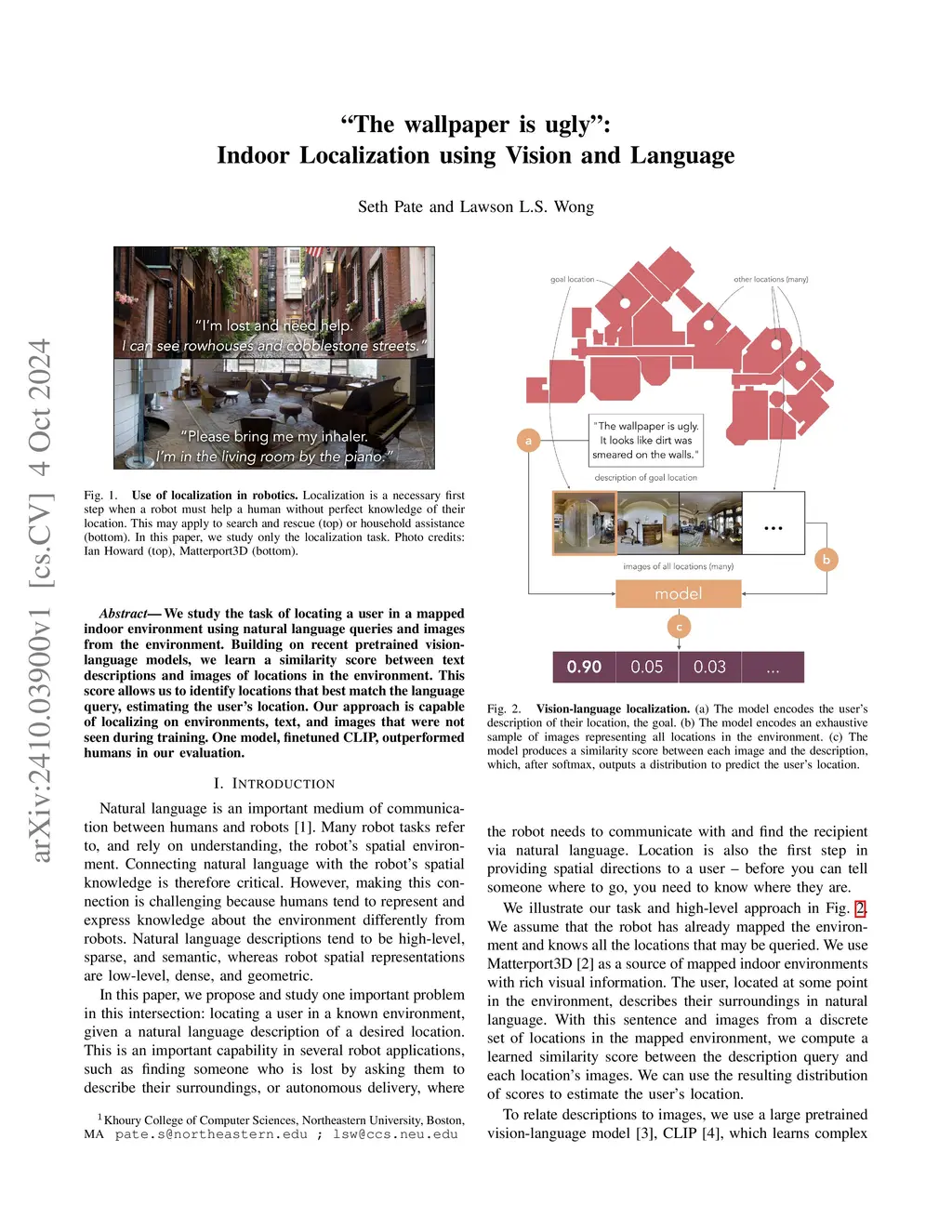 The Wallpaper is Ugly: Indoor Localization using Vision and Language