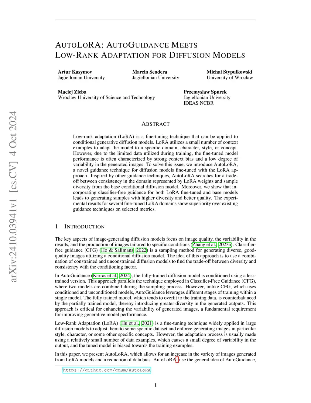 Low-rank adaptation (LoRA) is a fine-tuning technique that can be applied to conditional generative diffusion models. LoRA utilizes a small number of context examples to adapt the model to a specific domain, character, style, or concept. However, due to the limited data utilized during training, the fine-tuned model performance is often characterized by strong context bias and a low degree of variability in the generated images. To solve this issue, we introduce AutoLoRA, a novel guidance technique for diffusion models fine-tuned with the LoRA approach. Inspired by other guidance techniques, AutoLoRA searches for a trade-off between consistency in the domain represented by LoRA weights and sample diversity from the base conditional diffusion model. Moreover, we show that incorporating classifier-free guidance for both LoRA fine-tuned and base models leads to generating samples with higher diversity and better quality. The experimental results for several fine-tuned LoRA domains show superiority over existing guidance techniques on selected metrics.
