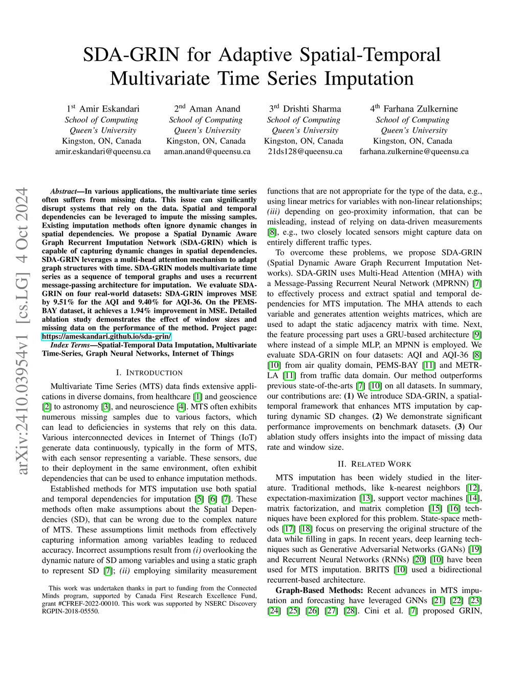 SDA-GRIN for Adaptive Spatial-Temporal Multivariate Time Series Imputation