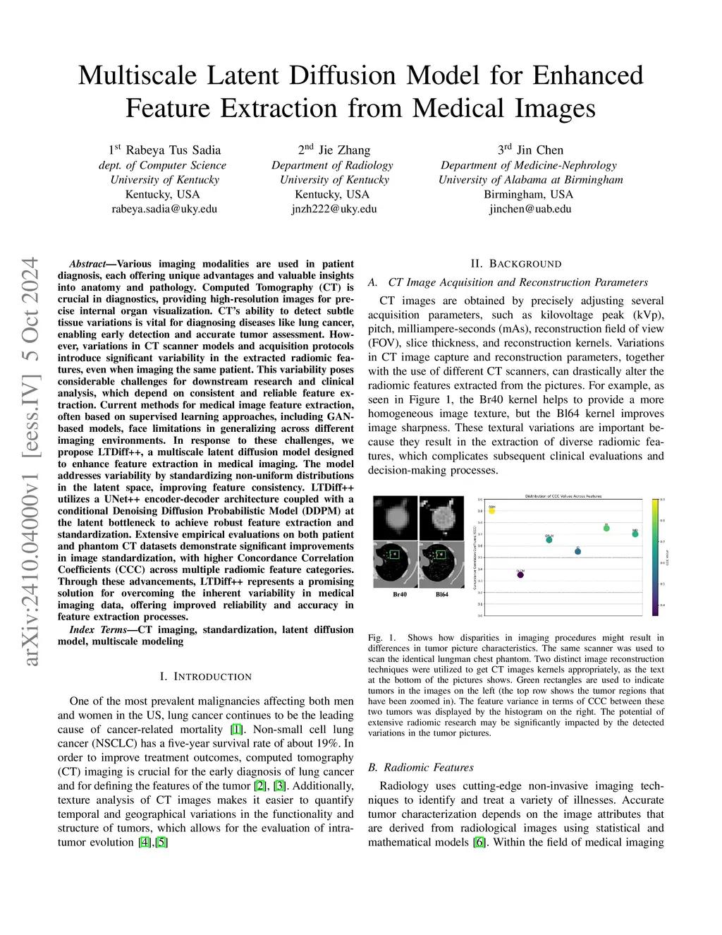 Various imaging modalities are used in patient diagnosis, each offering unique advantages and valuable insights into anatomy and pathology. Computed Tomography (CT) is crucial in diagnostics, providing high-resolution images for precise internal organ visualization. CT's ability to detect subtle tissue variations is vital for diagnosing diseases like lung cancer, enabling early detection and accurate tumor assessment. However, variations in CT scanner models and acquisition protocols introduce significant variability in the extracted radiomic features, even when imaging the same patient. This variability poses considerable challenges for downstream research and clinical analysis, which depend on consistent and reliable feature extraction. Current methods for medical image feature extraction, often based on supervised learning approaches, including GAN-based models, face limitations in generalizing across different imaging environments. In response to these challenges, we propose LTDiff++, a multiscale latent diffusion model designed to enhance feature extraction in medical imaging. The model addresses variability by standardizing non-uniform distributions in the latent space, improving feature consistency. LTDiff++ utilizes a UNet++ encoder-decoder architecture coupled with a conditional Denoising Diffusion Probabilistic Model (DDPM) at the latent bottleneck to achieve robust feature extraction and standardization. Extensive empirical evaluations on both patient and phantom CT datasets demonstrate significant improvements in image standardization, with higher Concordance Correlation Coefficients (CCC) across multiple radiomic feature categories. Through these advancements, LTDiff++ represents a promising solution for overcoming the inherent variability in medical imaging data, offering improved reliability and accuracy in feature extraction processes.