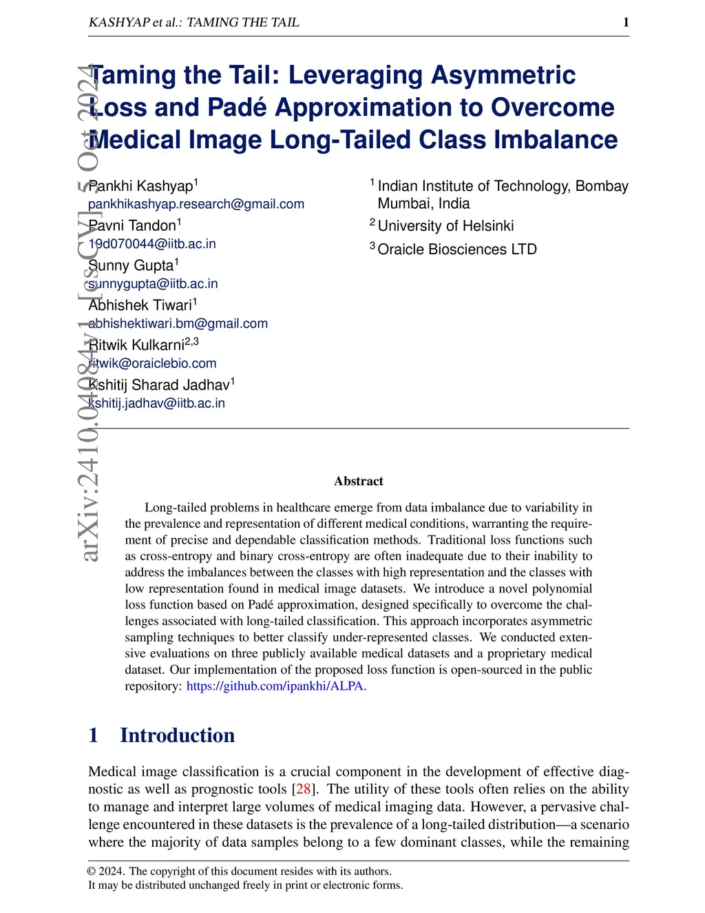 Long-tailed problems in healthcare emerge from data imbalance due to variability in the prevalence and representation of different medical conditions, warranting the requirement of precise and dependable classification methods. Traditional loss functions such as cross-entropy and binary cross-entropy are often inadequate due to their inability to address the imbalances between the classes with high representation and the classes with low representation found in medical image datasets. We introduce a novel polynomial loss function based on Pade approximation, designed specifically to overcome the challenges associated with long-tailed classification. This approach incorporates asymmetric sampling techniques to better classify under-represented classes. We conducted extensive evaluations on three publicly available medical datasets and a proprietary medical dataset. Our implementation of the proposed loss function is open-sourced in the public repository:https://github.com/ipankhi/ALPA.