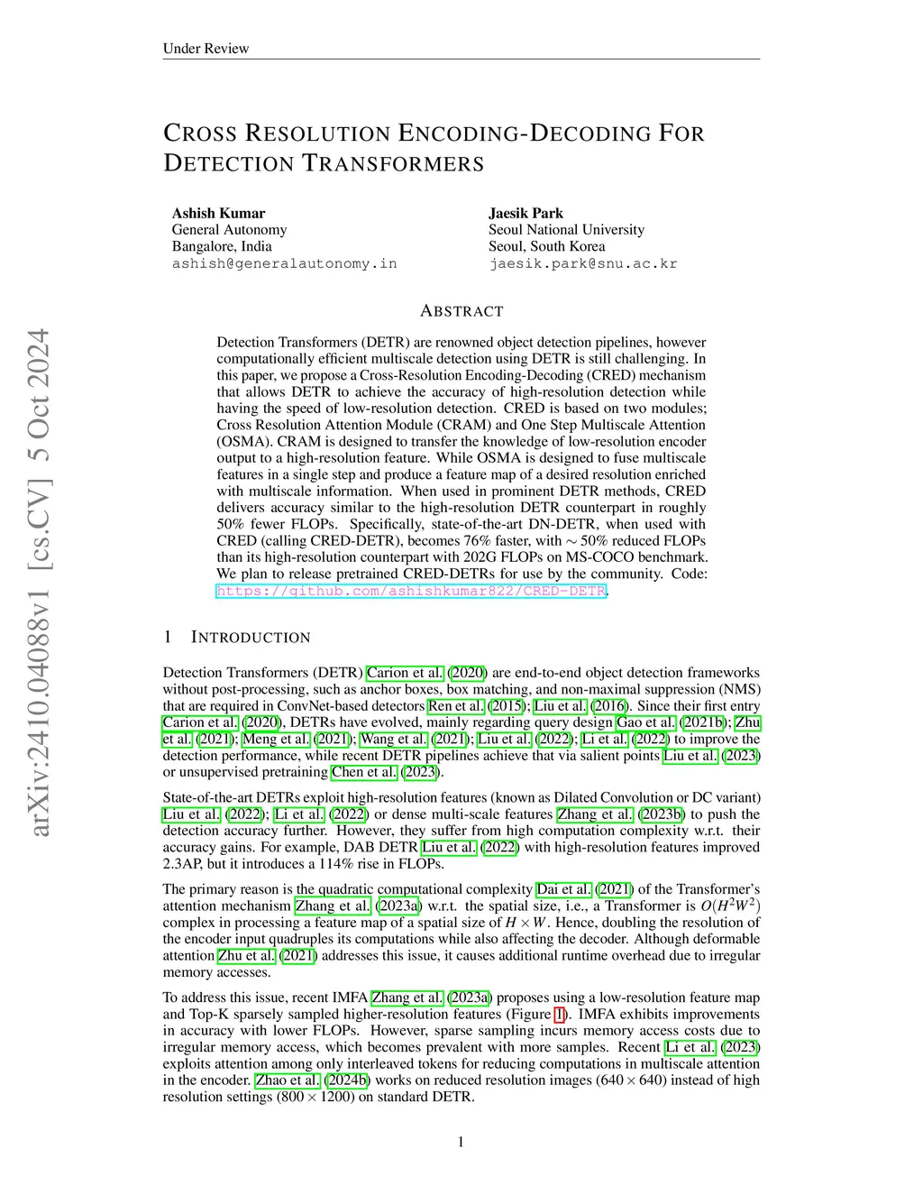 Cross Resolution Encoding-Decoding For Detection Transformers