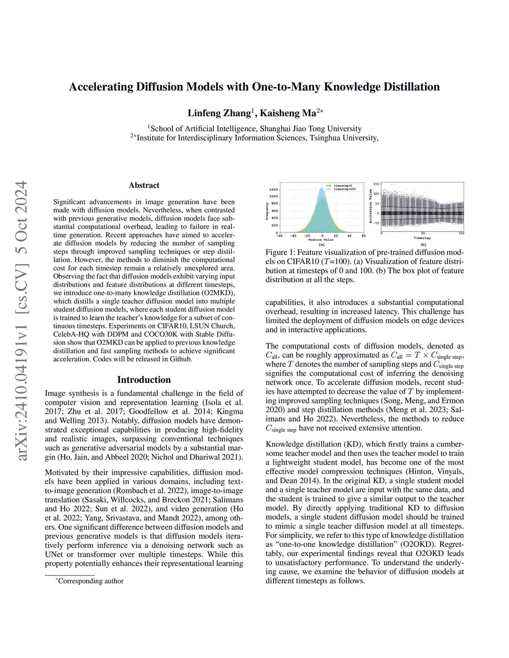Significant advancements in image generation have been made with diffusion models. Nevertheless, when contrasted with previous generative models, diffusion models face substantial computational overhead, leading to failure in real-time generation. Recent approaches have aimed to accelerate diffusion models by reducing the number of sampling steps through improved sampling techniques or step distillation. However, the methods to diminish the computational cost for each timestep remain a relatively unexplored area. Observing the fact that diffusion models exhibit varying input distributions and feature distributions at different timesteps, we introduce one-to-many knowledge distillation (O2MKD), which distills a single teacher diffusion model into multiple student diffusion models, where each student diffusion model is trained to learn the teacher's knowledge for a subset of continuous timesteps. Experiments on CIFAR10, LSUN Church, CelebA-HQ with DDPM and COCO30K with Stable Diffusion show that O2MKD can be applied to previous knowledge distillation and fast sampling methods to achieve significant acceleration. Codes will be released in Github.