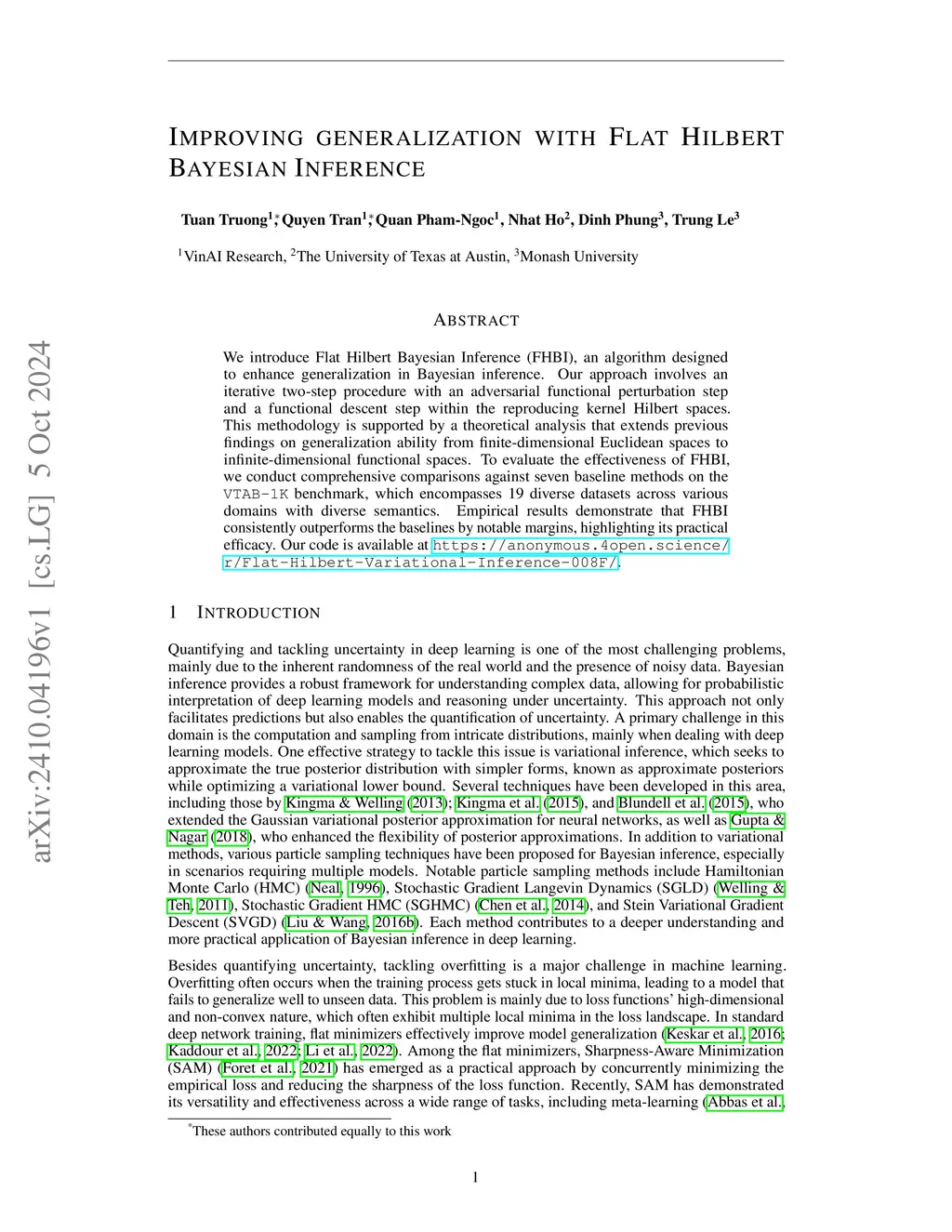 Improving Generalization with Flat Hilbert Bayesian Inference