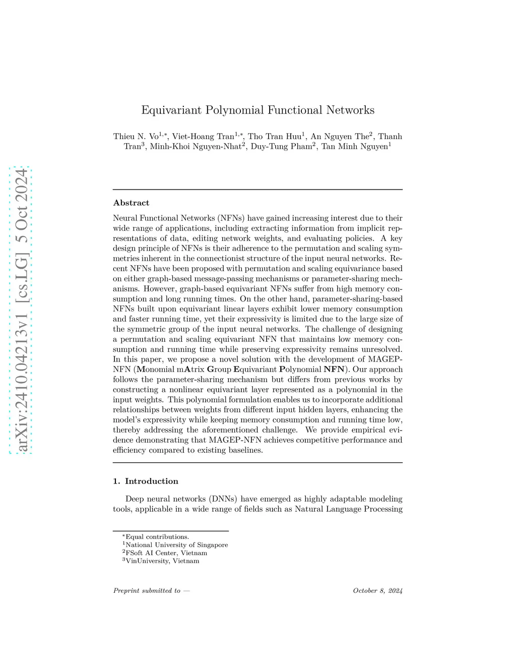 Neural Functional Networks (NFNs) have gained increasing interest due to their wide range of applications, including extracting information from implicit representations of data, editing network weights, and evaluating policies. A key design principle of NFNs is their adherence to the permutation and scaling symmetries inherent in the connectionist structure of the input neural networks. Recent NFNs have been proposed with permutation and scaling equivariance based on either graph-based message-passing mechanisms or parameter-sharing mechanisms. However, graph-based equivariant NFNs suffer from high memory consumption and long running times. On the other hand, parameter-sharing-based NFNs built upon equivariant linear layers exhibit lower memory consumption and faster running time, yet their expressivity is limited due to the large size of the symmetric group of the input neural networks. The challenge of designing a permutation and scaling equivariant NFN that maintains low memory consumption and running time while preserving expressivity remains unresolved. In this paper, we propose a novel solution with the development of MAGEP-NFN (Monomial mAtrix Group Equivariant Polynomial NFN). Our approach follows the parameter-sharing mechanism but differs from previous works by constructing a nonlinear equivariant layer represented as a polynomial in the input weights. This polynomial formulation enables us to incorporate additional relationships between weights from different input hidden layers, enhancing the model's expressivity while keeping memory consumption and running time low, thereby addressing the aforementioned challenge. We provide empirical evidence demonstrating that MAGEP-NFN achieves competitive performance and efficiency compared to existing baselines.