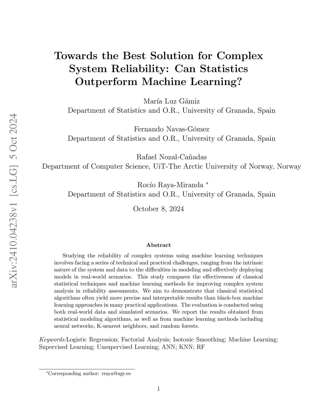 Studying the reliability of complex systems using machine learning techniques involves facing a series of technical and practical challenges, ranging from the intrinsic nature of the system and data to the difficulties in modeling and effectively deploying models in real-world scenarios. This study compares the effectiveness of classical statistical techniques and machine learning methods for improving complex system analysis in reliability assessments. We aim to demonstrate that classical statistical algorithms often yield more precise and interpretable results than black-box machine learning approaches in many practical applications. The evaluation is conducted using both real-world data and simulated scenarios. We report the results obtained from statistical modeling algorithms, as well as from machine learning methods including neural networks, K-nearest neighbors, and random forests.