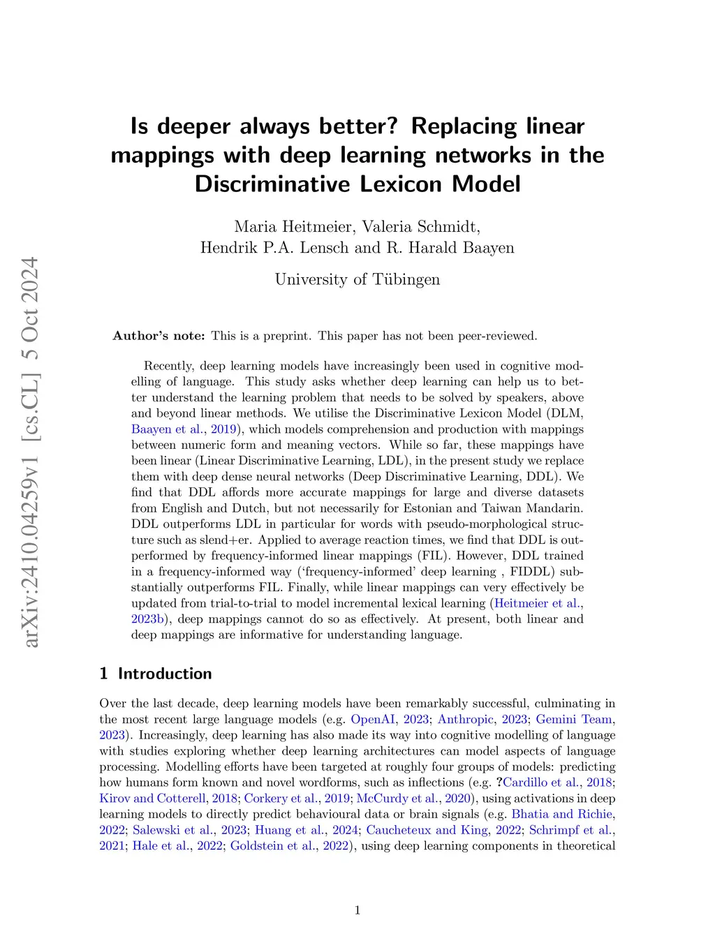 Is deeper always better? Replacing linear mappings with deep learning networks in the Discriminative Lexicon Model