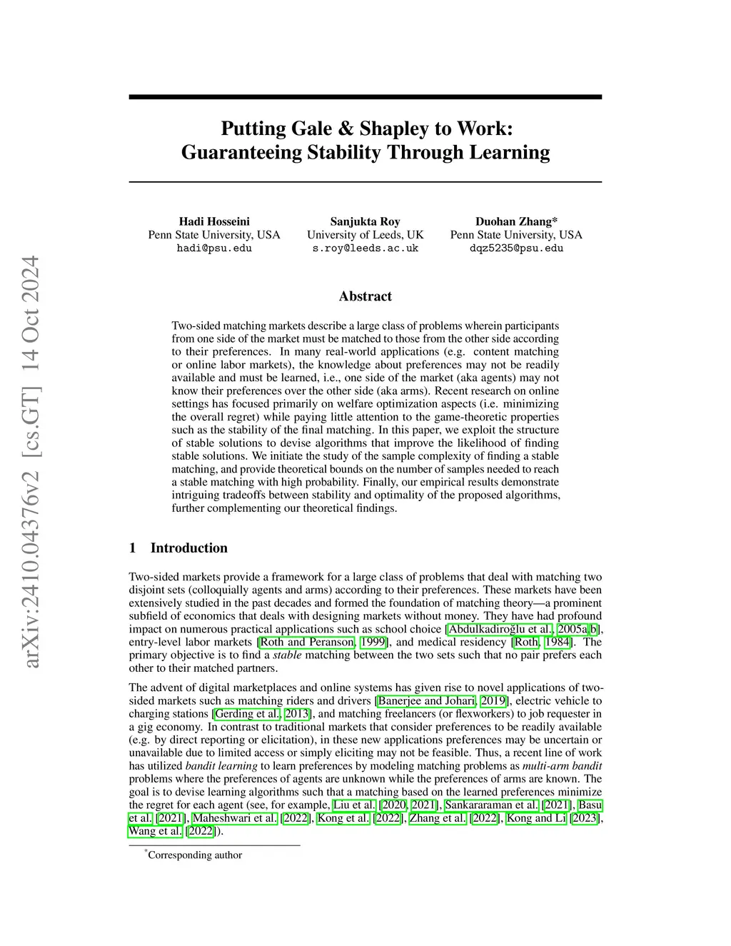 Putting Gale & Shapley to Work: Guaranteeing Stability Through Learning