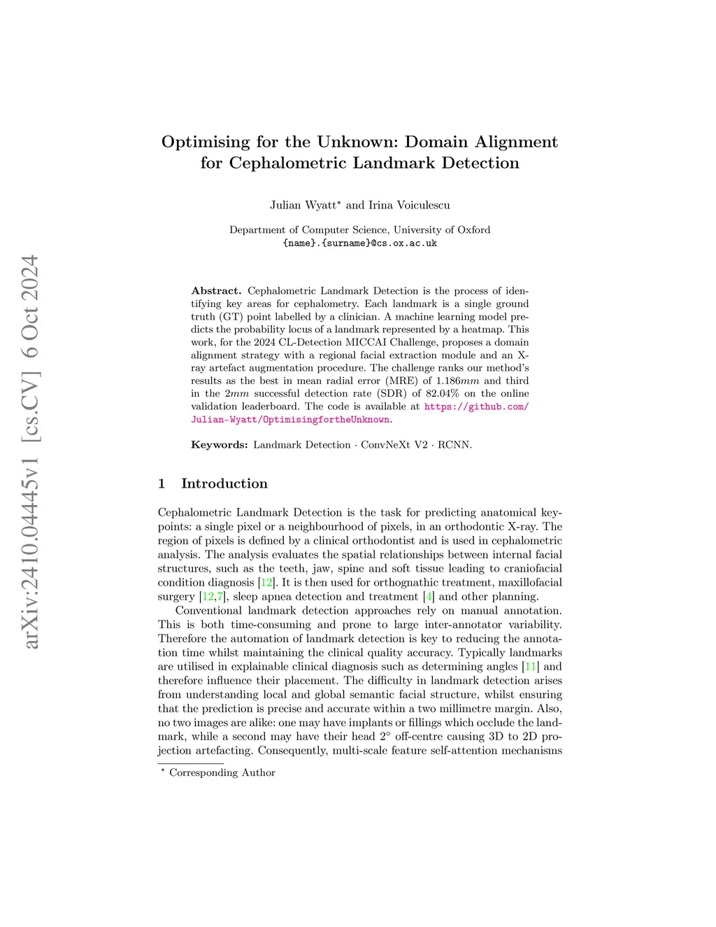 Optimising for the Unknown: Domain Alignment for Cephalometric Landmark