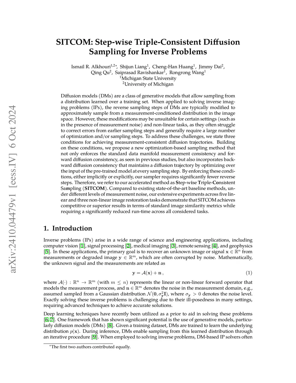 SITCOM: Step-wise Triple-Consistent Diffusion Sampling for Inverse Problems