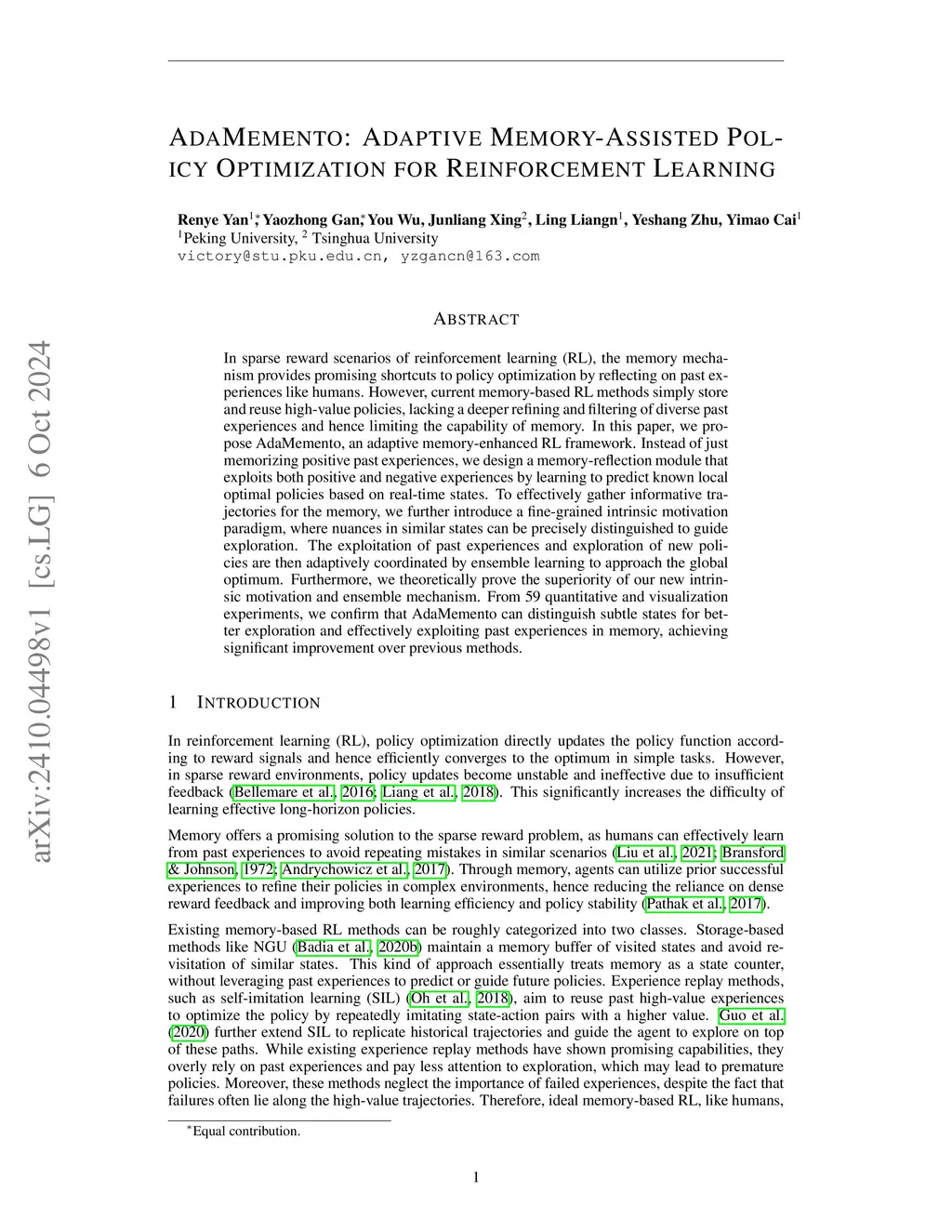 AdaMemento: Adaptive Memory-Assisted Policy Optimization for