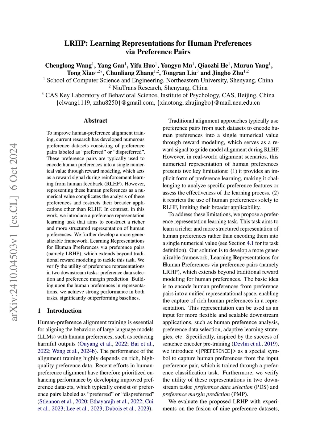 LRHP: Learning Representations for Human Preferences via Preference