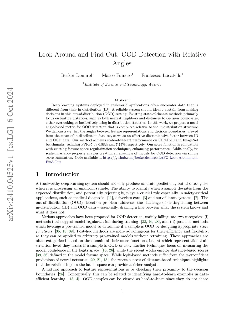 Out-of-Distribution Detection with Relative Angles