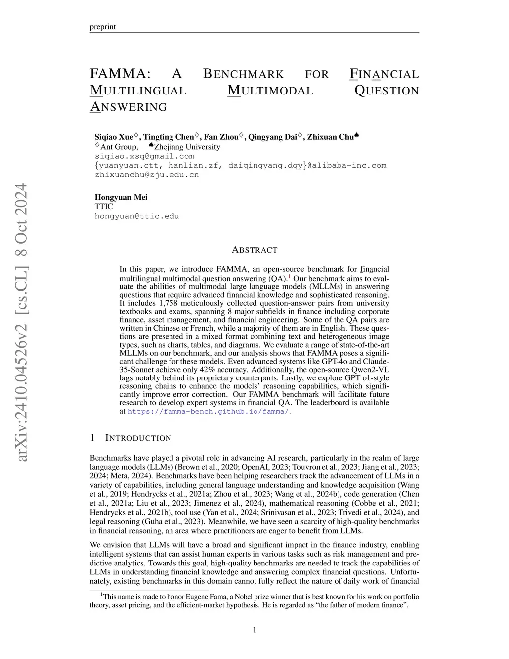 FAMMA: A Benchmark for Financial Domain Multilingual Multimodal Question Answering
