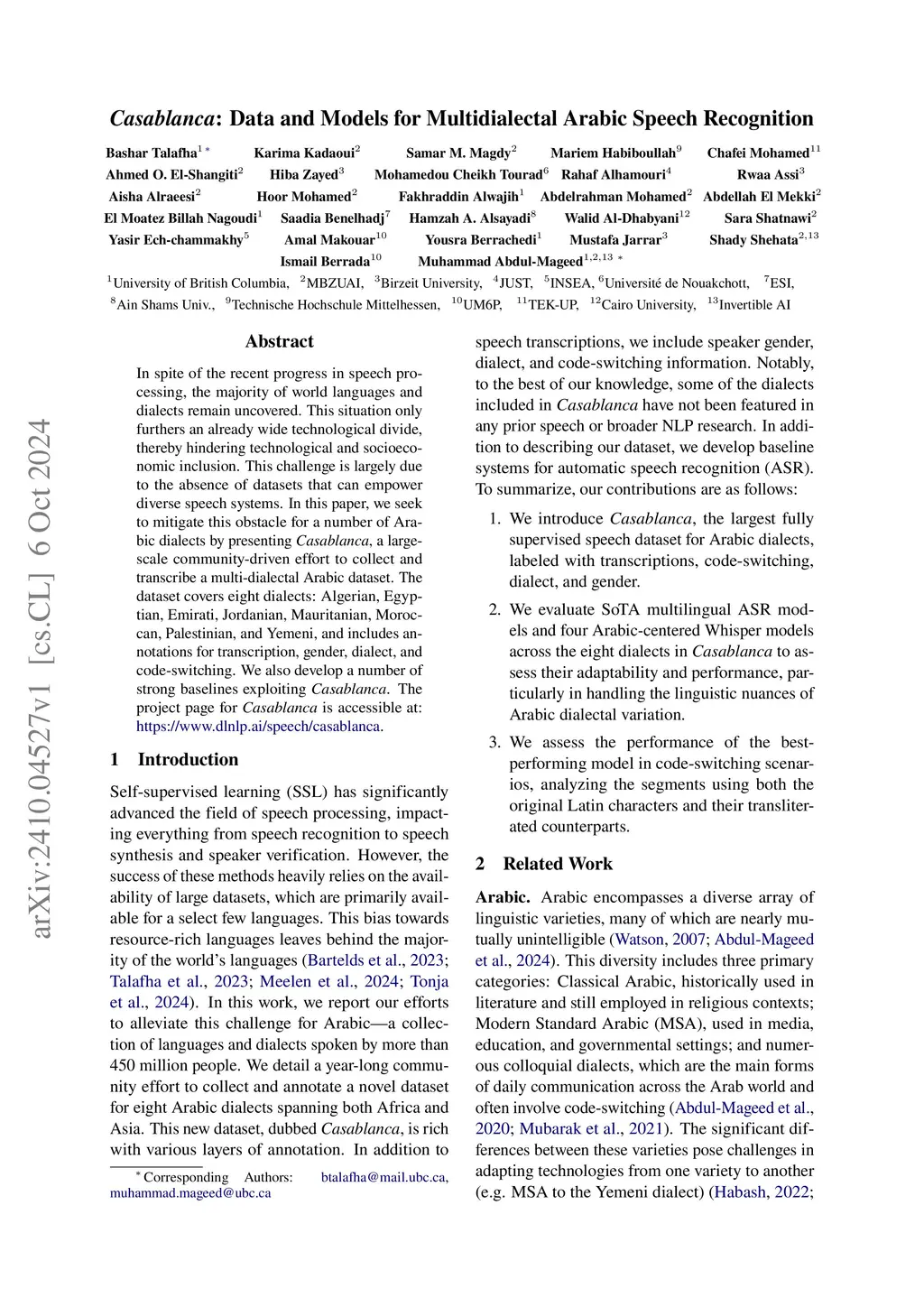 Casablanca: Data and Models for Multidialectal Arabic Speech Recognition