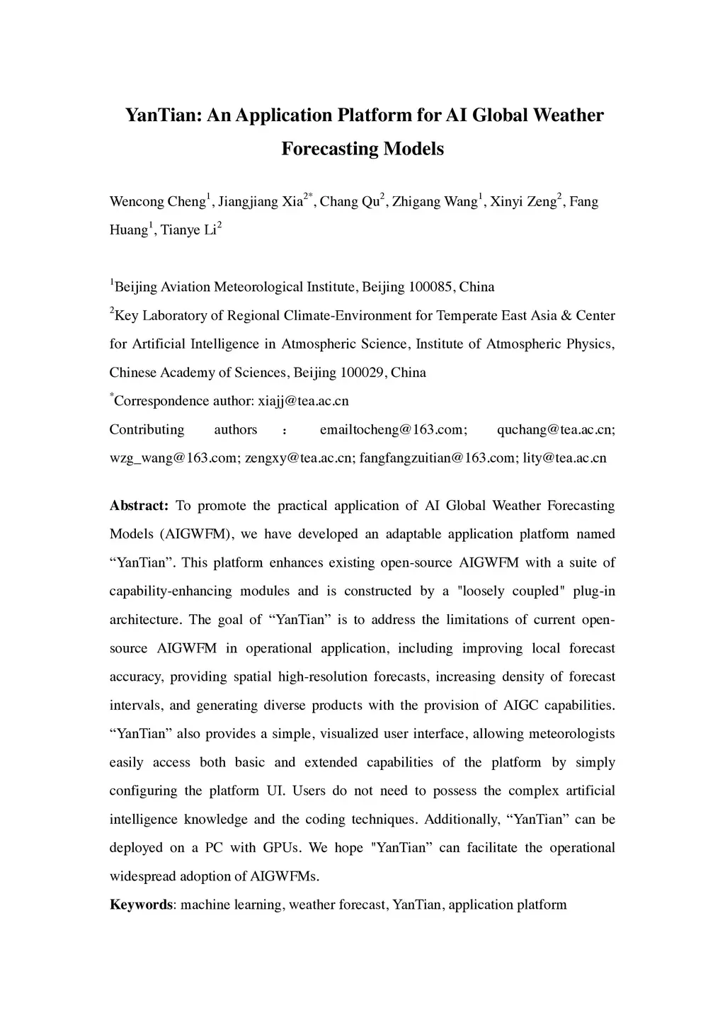 To promote the practical application of AI Global Weather Forecasting Models (AIGWFM), we have developed an adaptable application platform named 'YanTian'. This platform enhances existing open-source AIGWFM with a suite of capability-enhancing modules and is constructed by a "loosely coupled" plug-in architecture. The goal of 'YanTian' is to address the limitations of current open-source AIGWFM in operational application, including improving local forecast accuracy, providing spatial high-resolution forecasts, increasing density of forecast intervals, and generating diverse products with the provision of AIGC capabilities. 'YianTian' also provides a simple, visualized user interface, allowing meteorologists easily access both basic and extended capabilities of the platform by simply configuring the platform UI. Users do not need to possess the complex artificial intelligence knowledge and the coding techniques. Additionally, 'YianTian' can be deployed on a PC with GPUs. We hope 'YianTian' can facilitate the operational widespread adoption of AIGWFMs.