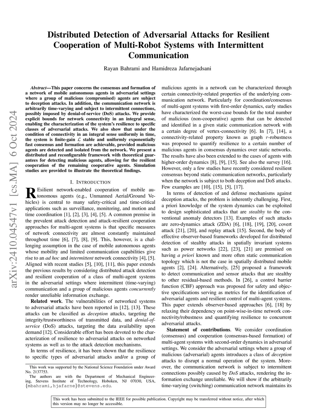This paper concerns the consensus and formation of a network of mobile autonomous agents in adversarial settings where a group of malicious (compromised) agents are subject to deception attacks. In addition, the communication network is arbitrarily time-varying and subject to intermittent connections, possibly imposed by denial-of-service (DoS) attacks. We provide explicit bounds for network connectivity in an integral sense, enabling the characterization of the system's resilience to specific classes of adversarial attacks. We also show that under the condition of connectivity in an integral sense uniformly in time, the system is finite-gain stable and uniformly exponentially fast consensus and formation are achievable, provided malicious agents are detected and isolated from the network. We present a distributed and reconfigurable framework with theoretical guarantees for detecting malicious agents, allowing for the resilient cooperation of the remaining cooperative agents. Simulation studies are provided to illustrate the theoretical findings.