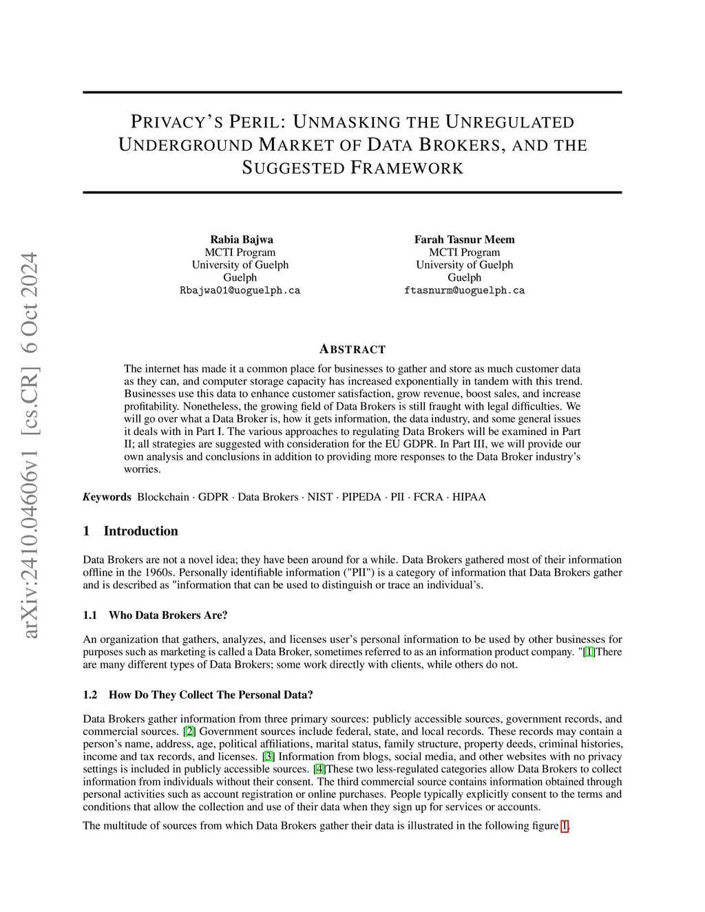 The internet is a common place for businesses to collect and store as much client data as possible and computer storage capacity has increased exponentially due to this trend. Businesses utilize this data to enhance customer satisfaction, generate revenue, boost sales, and increase profile. However, the emerging sector of data brokers is plagued with legal challenges. In part I, we will look at what a data broker is, how it collects information, the data industry, and some of the difficulties it encounters. In Part II, we will look at potential options for regulating data brokers. All options are provided in light of the EU General Data Protection Regulation (GDPR). In Part III, we shall present our analysis and findings.