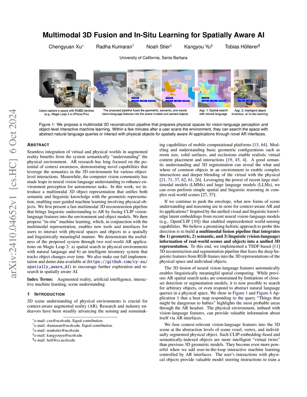 Multimodal 3D Fusion and In-Situ Learning for Spatially Aware AI