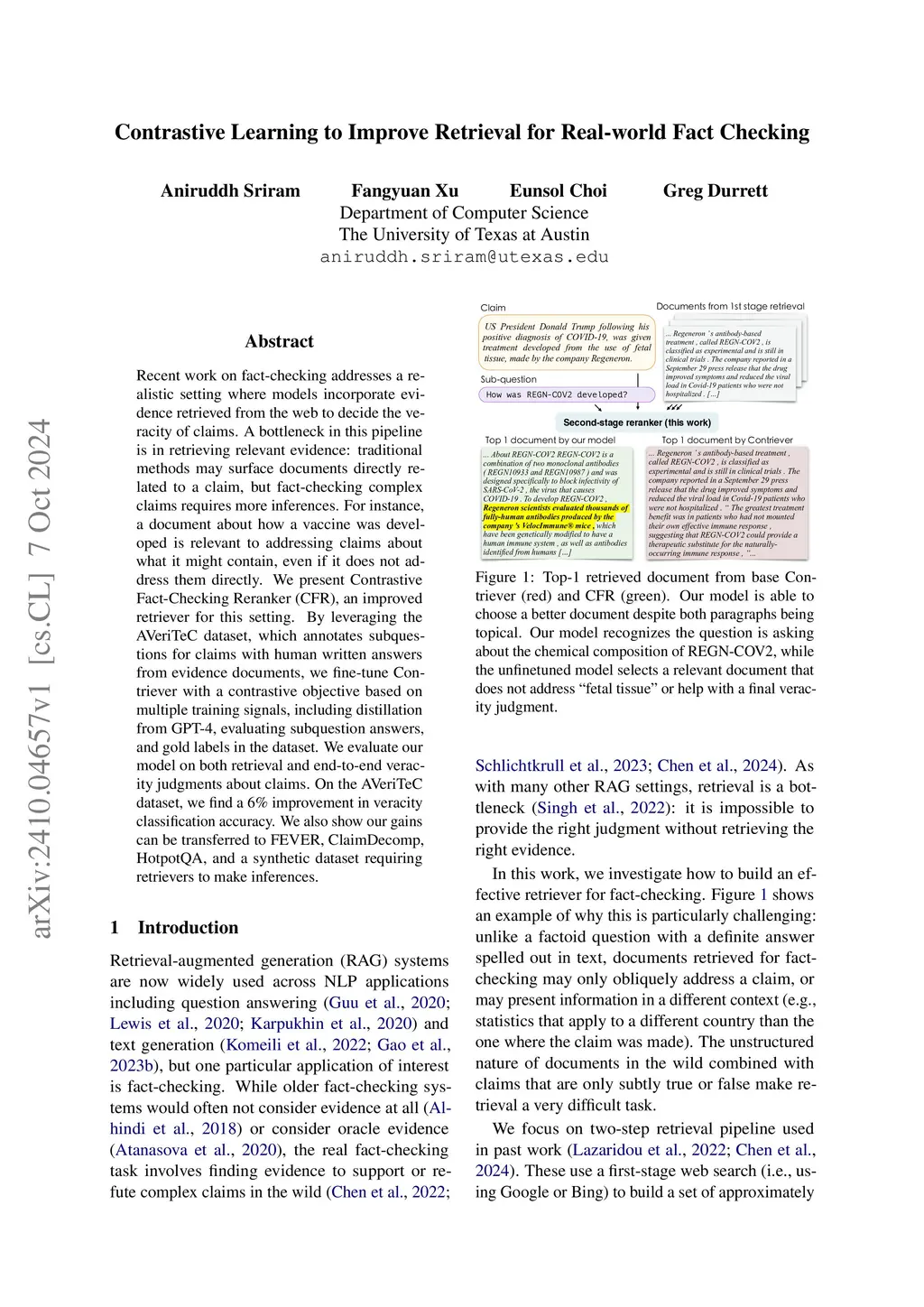 Contrastive Learning to Improve Retrieval for Real-world Fact Checking