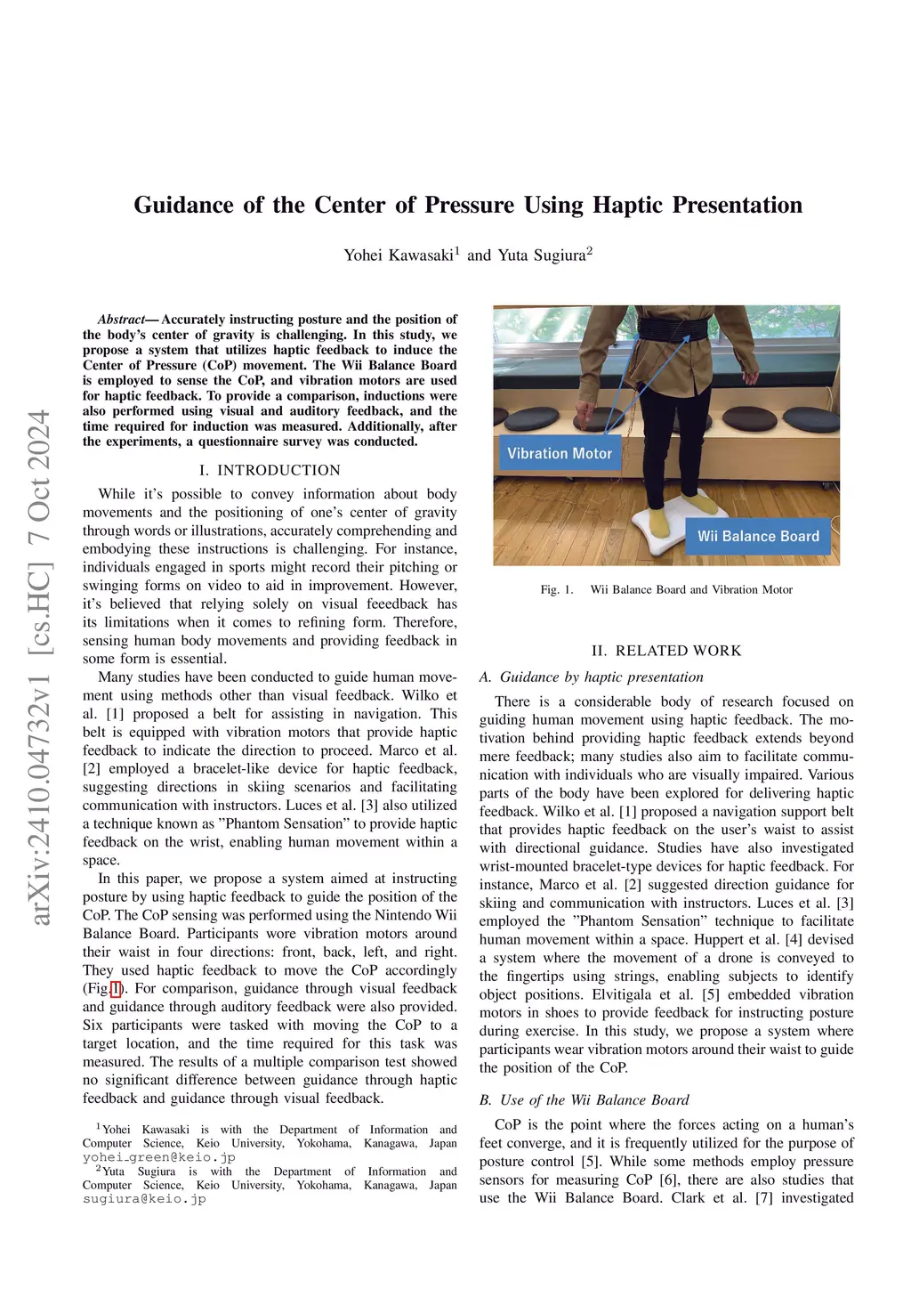 Accurately instructing posture and the position of the body's center of gravity is challenging. In this study, we propose a system that utilizes haptic feedback to induce the Center of Pressure (CoP) movement. The Wii Balance Board is employed to sense the CoP, and vibration motors are used for haptic feedback. To provide a comparison, inductions were also performed using visual and auditory feedback, and the time required for induction was measured. Additionally, after the experiments, a questionnaire survey was conducted.