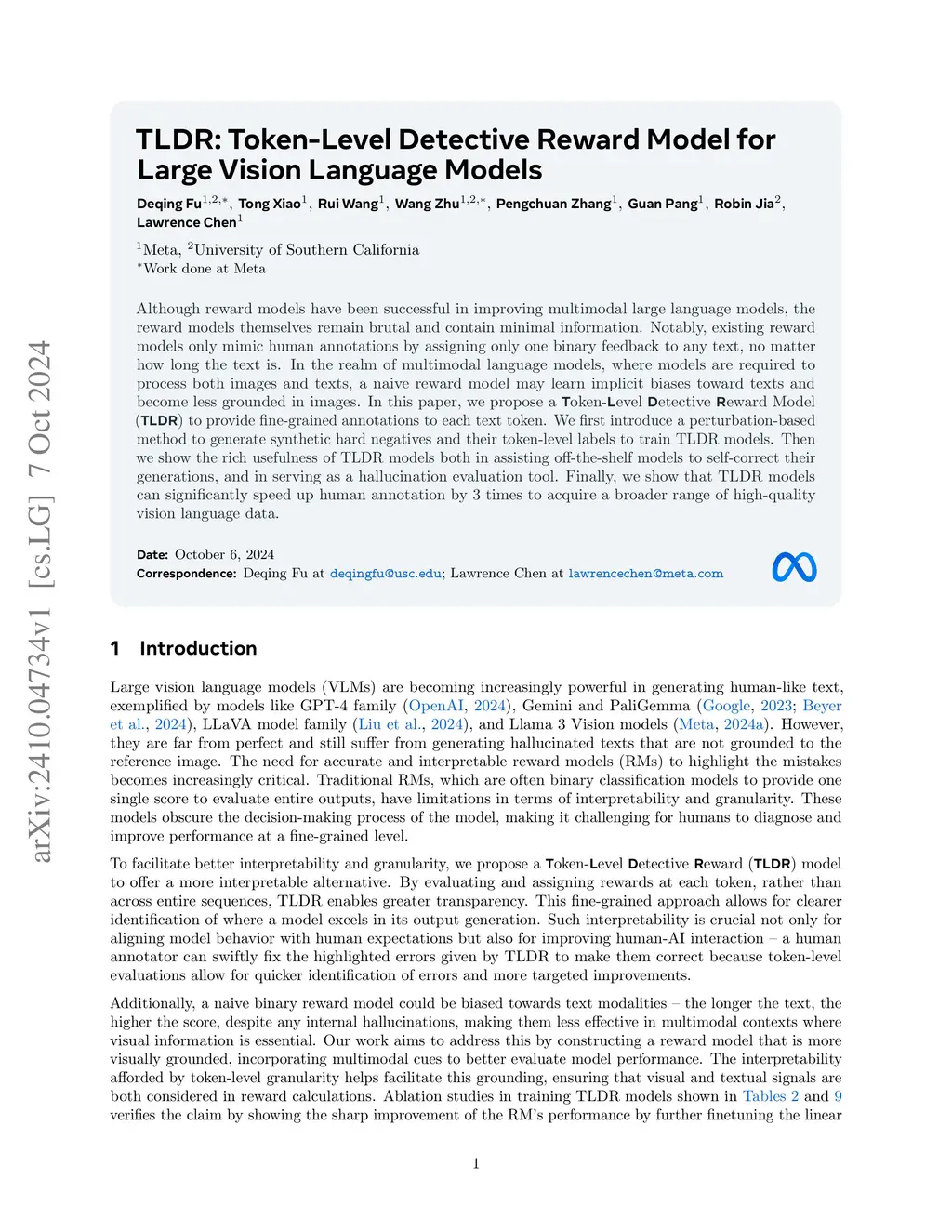 Although reward models have been successful in improving multimodal large language models, the reward models themselves remain brutal and contain minimal information. Notably, existing reward models only mimic human annotations by assigning only one binary feedback to any text, no matter how long the text is. In the realm of multimodal language models, where models are required to process both images and texts, a naive reward model may learn implicit biases toward texts and become less grounded in images. In this paper, we propose a oken-evel etective eward Model () to provide fine-grained annotations to each text token. We first introduce a perturbation-based method to generate synthetic hard negatives and their token-level labels to train TLDR models. Then we show the rich usefulness of TLDR models both in assisting off-the-shelf models to self-correct their generations, and in serving as a hallucination evaluation tool. We show that TLDR automatically trains a token-level likelihood optimization, and can improve the base model's performance significantly. Finally, we show that TLDR models can significantly speed up human annotation by 3 times to acquire a broader range of high-quality vision language data.