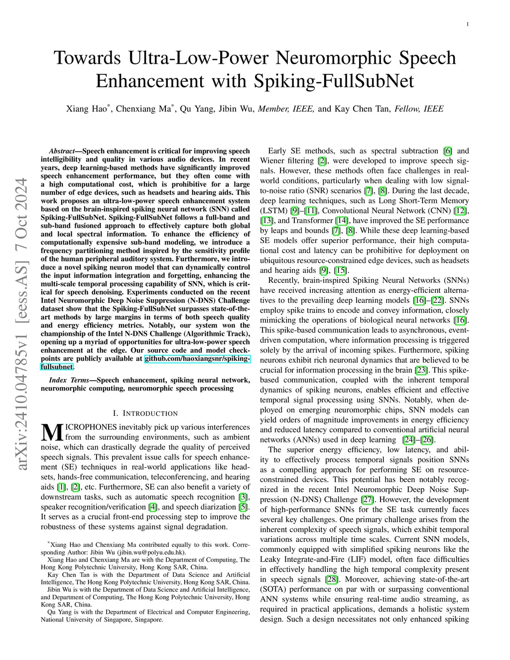 Towards Ultra-Low-Power Neuromorphic Speech Enhancement with