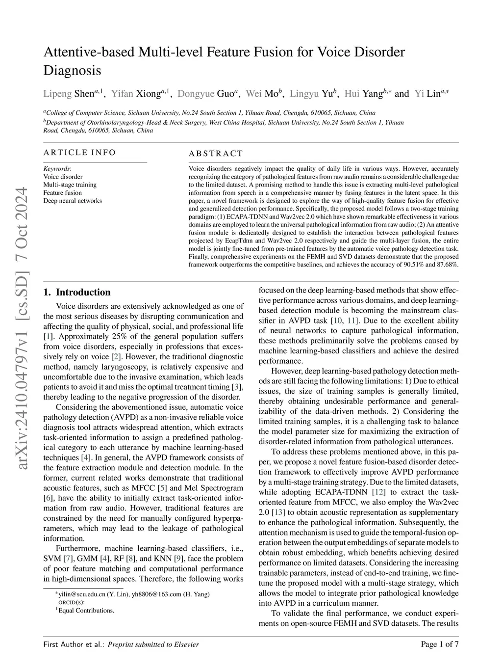 Attentive-based Multi-level Feature Fusion for Voice Disorder Diagnosis