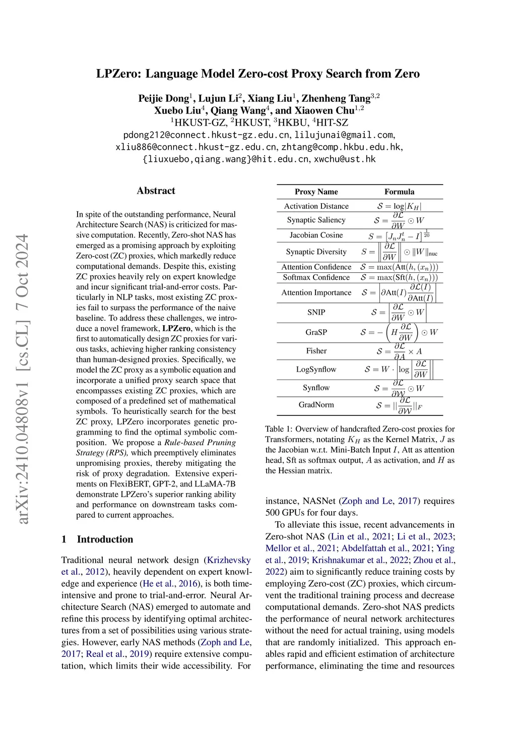 LPZero: Language Model Zero-cost Proxy Search from Zero