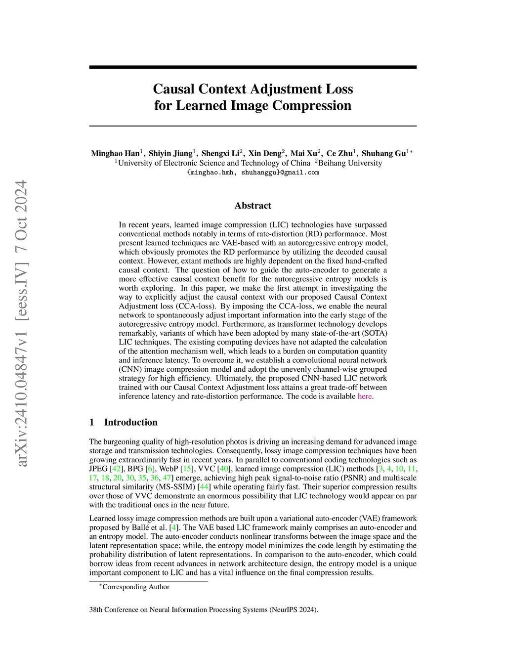 In recent years, learned image compression (LIC) technologies have surpassed conventional methods notably in terms of rate-distortion (RD) performance. Most present learned techniques are VAE-based with an autoregressive entropy model, which obviously promotes the RD performance by utilizing the decoded causal context. However, extant methods are highly dependent on the fixed hand-crafted causal context. The question of how to guide the auto-encoder to generate a more effective causal context benefit for the autoregressive entropy models is worth exploring. In this paper, we make the first attempt in investigating the way to explicitly adjust the causal context with our proposed Causal Context Adjustment loss (CCA-loss). By imposing the CCA-loss, we enable the neural network to spontaneously adjust important information into the early stage of the autoregressive entropy model. Furthermore, as transformer technology develops remarkably, variants of which have been adopted by many state-of-the-art (SOTA) LIC techniques. The existing computing devices have not adapted the calculation of the attention mechanism well, which leads to a burden on computation quantity and inference latency. To overcome it, we establish a convolutional neural network (CNN) image compression model and adopt the unevenly channel-wise grouped strategy for high efficiency. Ultimately, the proposed CNN-based LIC network trained with our Causal Context Adjustment loss attains a great trade-off between inference latency and rate-distortion performance.