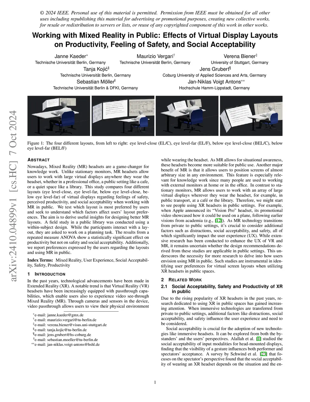 Working with Mixed Reality in Public: Effects of Virtual Display Layouts