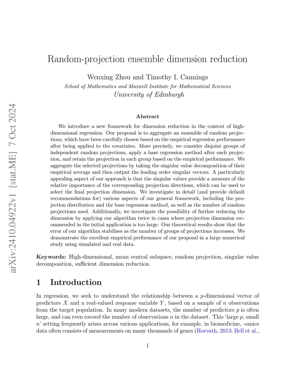 Random-projection ensemble dimension reduction