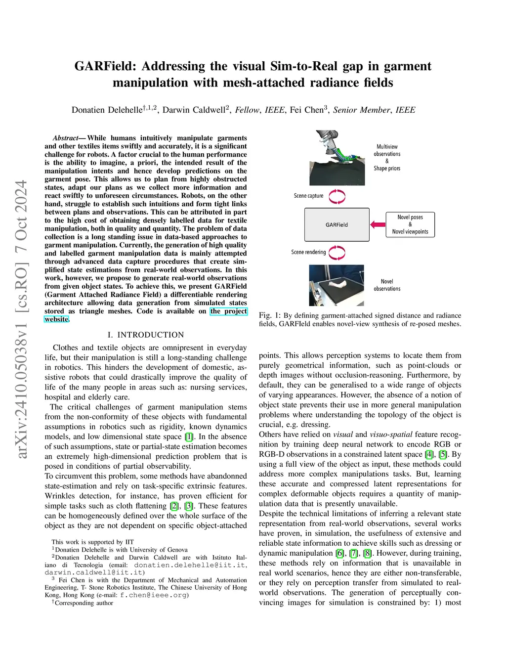 GARField: Addressing the visual Sim-to-Real gap in garment manipulation with mesh-attached radiance fields
