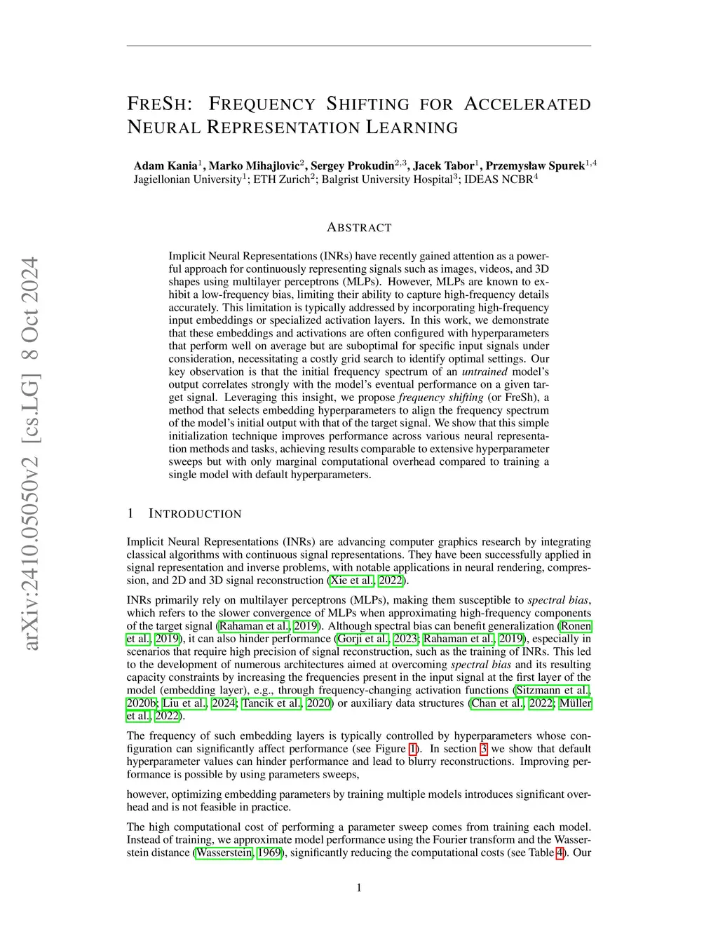 FreSh: Frequency Shifting for Accelerated Neural Representation Learning