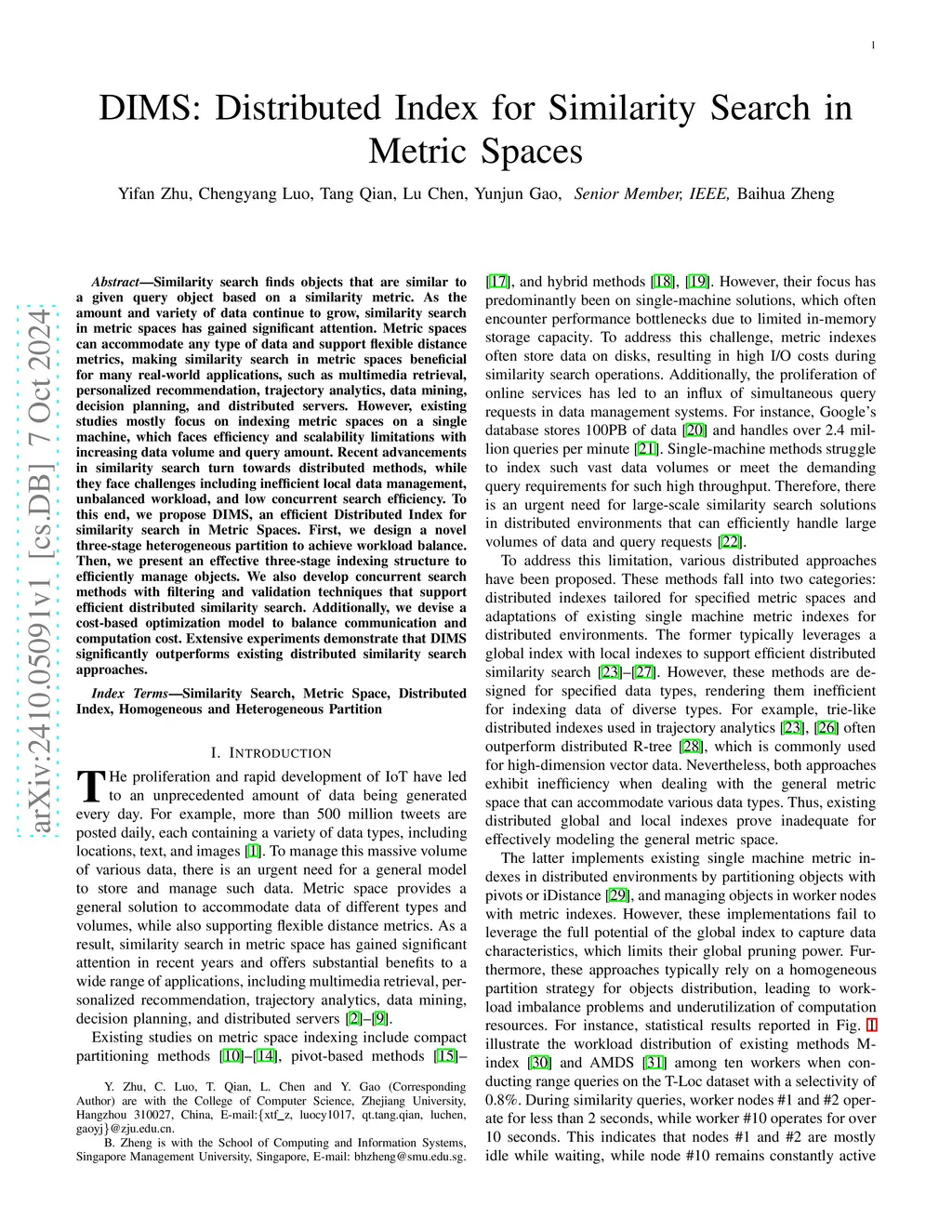 Similarity search finds objects that are similar to a given query object based on a similarity metric. As the amount and variety of data continue to grow, similarity search in metric spaces has gained significant attention. Metric spaces can accommodate any type of data and support flexible distance metrics, making similarity search in metric spaces beneficial for many real-world applications, such as multimedia retrieval, personalized recommendation, trajectory analytics, data mining, decision planning, and distributed servers. However, existing studies mostly focus on indexing metric spaces on a single machine, which faces efficiency and scalability limitations with increasing data volume and query amount. Recent advancements in similarity search turn towards distributed methods, while they face challenges including inefficient local data management, unbalanced workload, and low concurrent search efficiency. To this end, we propose DIMS, an efficient Distributed Index for similarity search in Metric Spaces. First, we design a novel three-stage heterogeneous partition to achieve workload balance. Then, we present an effective three-stage indexing structure to efficiently manage objects. We also develop concurrent search methods with filtering and validation techniques that support efficient distributed similarity search. Additionally, we devise a cost-based optimization model to balance communication and computation cost. Extensive experiments demonstrate that DIMS significantly outperforms existing distributed similarity search approaches.