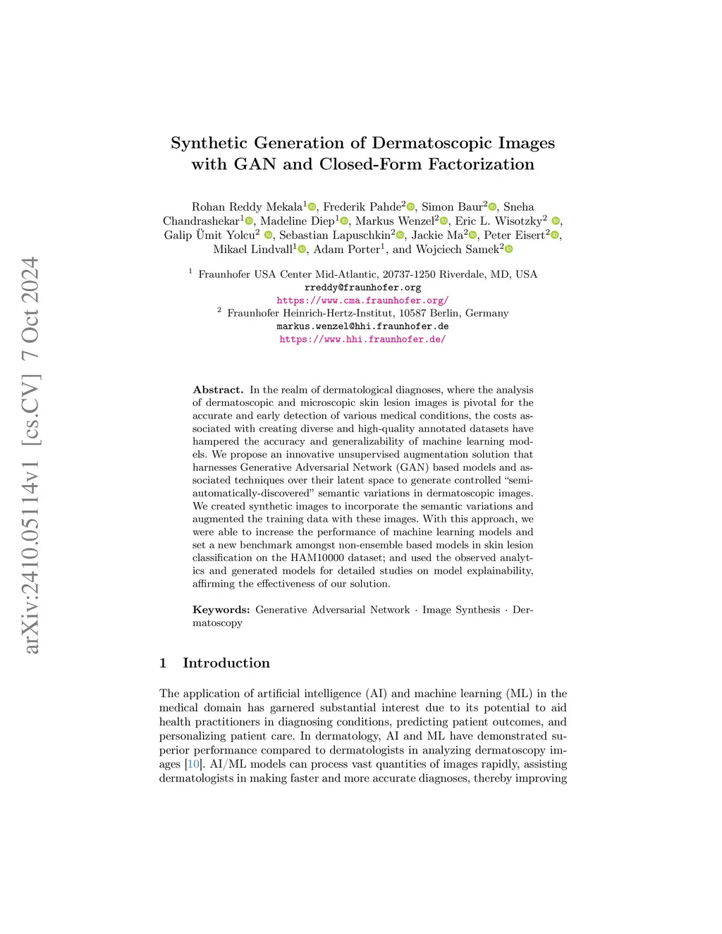Synthetic Generation of Dermatoscopic Images with GAN and Closed-Form