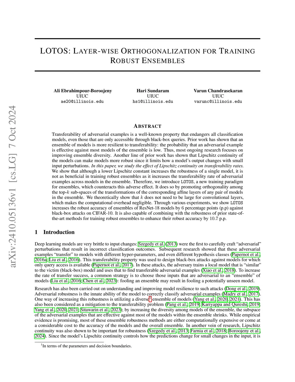 LOTOS: Layer-wise Orthogonalization for Training Robust Ensembles