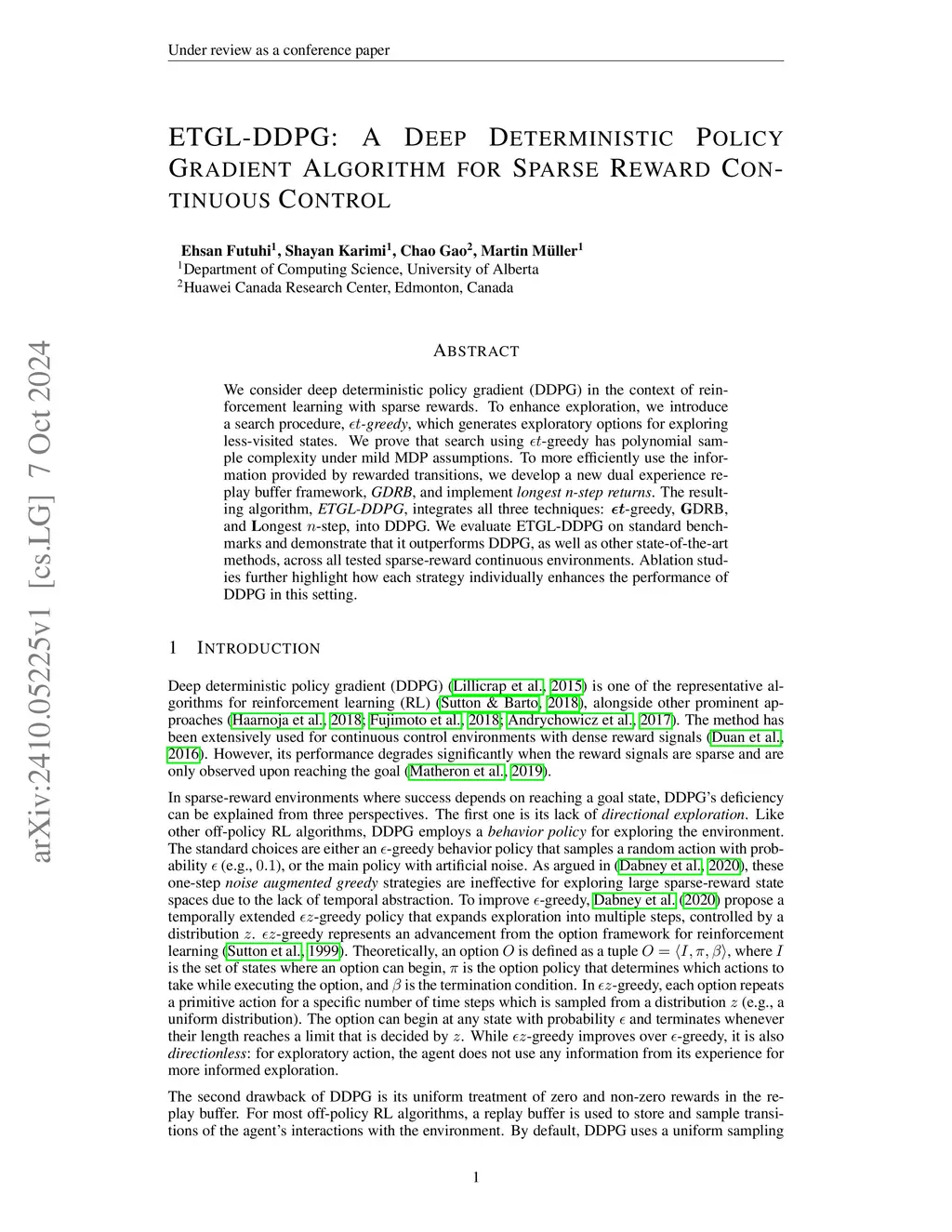 ETGL-DDPG: A Deep Deterministic Policy Gradient Algorithm for Sparse Reward Continuous Control