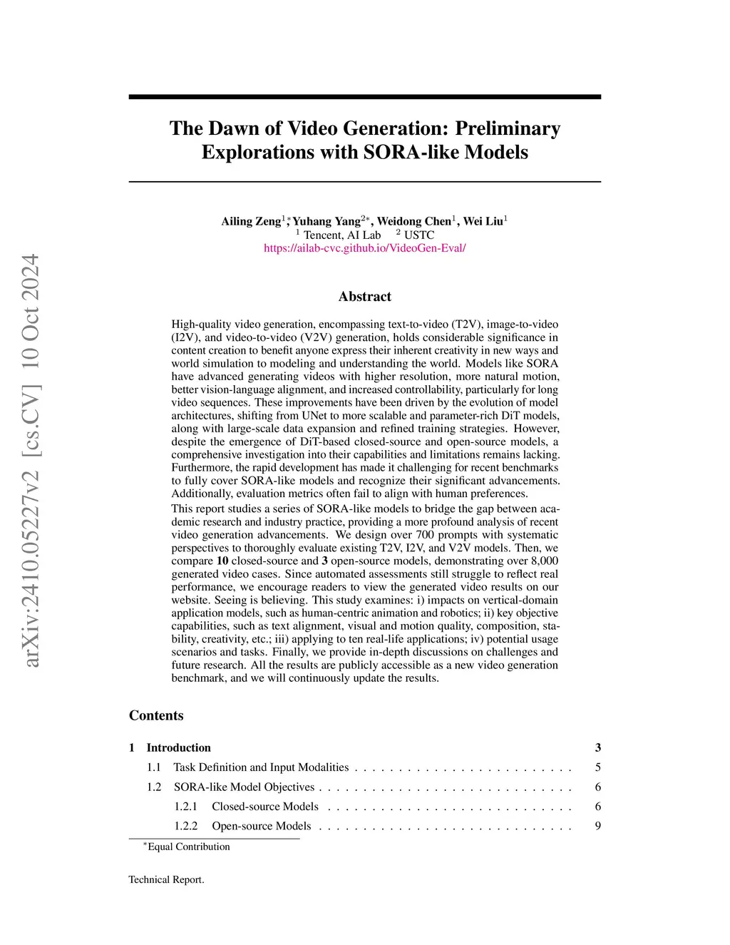 High-quality video generation, encompassing text-to-video (T2V), image-to-video (I2V), and video-to-video (V2V) generation, holds considerable significance in content creation to benefit anyone express their inherent creativity in new ways and world simulation to modeling and understanding the world. Models like SORA have advanced generating videos with higher resolution, more natural motion, better vision-language alignment, and increased controllability, particularly for long video sequences. These improvements have been driven by the evolution of model architectures, shifting from UNet to more scalable and parameter-rich DiT models, along with large-scale data expansion and refined training strategies. However, despite the emergence of DiT-based closed-source and open-source models, a comprehensive investigation into their capabilities and limitations remains lacking. Furthermore, the rapid development has made it challenging for recent benchmarks to fully cover SORA-like models and recognize their significant advancements. Additionally, evaluation metrics often fail to align with human preferences.