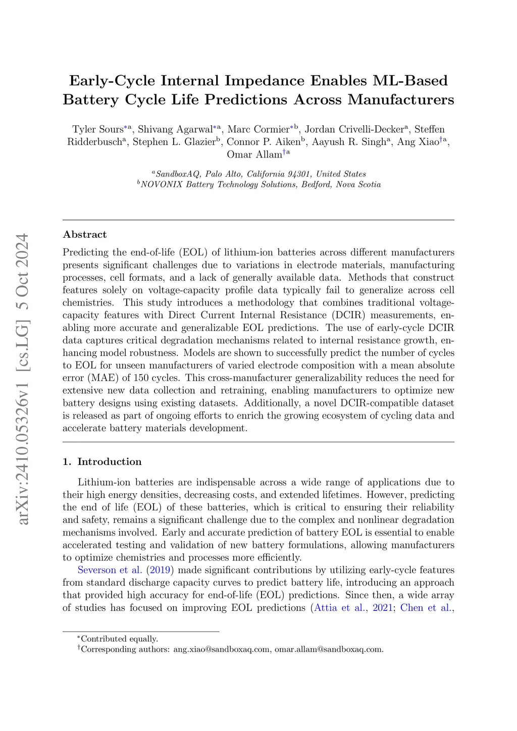 Early-Cycle Internal Impedance Enables ML-Based Battery Cycle Life Predictions Across Manufacturers