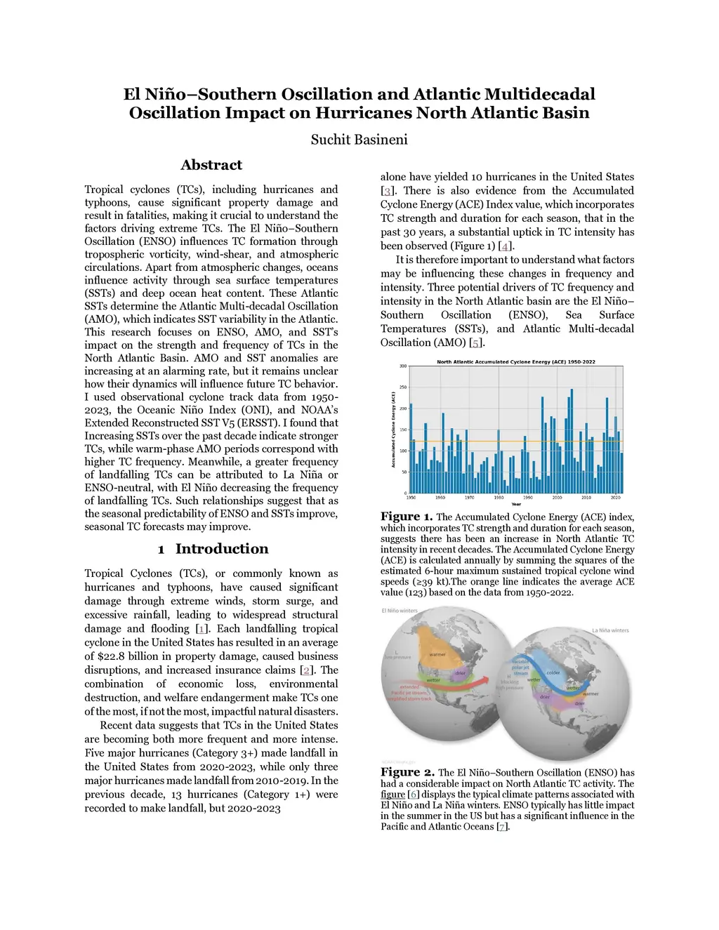 Tropical cyclones (TCs), including hurricanes and typhoons, cause significant property damage and result in fatalities, making it crucial to understand the factors driving extreme TCs. The El Nino Southern Oscillation (ENSO) influences TC formation through tropospheric vorticity, wind shear, and atmospheric circulations. Apart from atmospheric changes, oceans influence activity through sea surface temperatures (SSTs) and deep ocean heat content. These Atlantic SSTs determine the Atlantic Multidecadal Oscillation (AMO), which indicates SST variability in the Atlantic. This research focuses on ENSO, AMO, and SSTs impact on the strength and frequency of TCs in the North Atlantic Basin. AMO and SST anomalies are increasing at an alarming rate, but it remains unclear how their dynamics will influence future TC behavior. I used observational cyclone track data from 1950 to 2023, the Oceanic Nino Index (ONI), and NOAAs Extended Reconstructed SST V5 (ERSST). I found that Increasing SSTs over the past decade indicate stronger TCs, while warm phase AMO periods correspond with higher TC frequency. Meanwhile, a greater frequency of landfalling TCs can be attributed to La Nina or ENSO-neutral, with El Nino decreasing the frequency of landfalling TCs. Such relationships suggest that as the seasonal predictability of ENSO and SSTs improve, seasonal TC forecasts may improve.