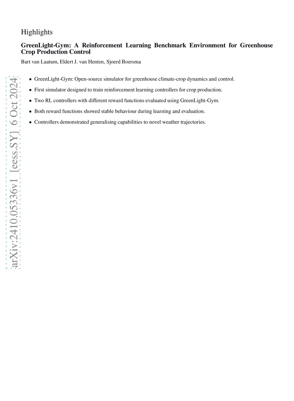 GreenLight-Gym: Reinforcement learning benchmark environment for control of greenhouse production systems