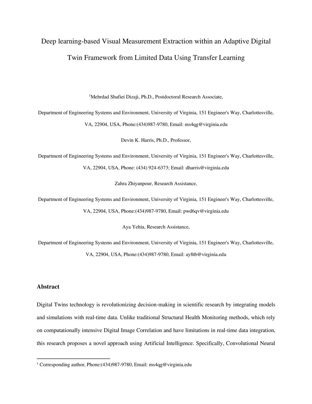 Digital Twins technology is revolutionizing decision-making in scientific research by integrating models and simulations with real-time data. Unlike traditional Structural Health Monitoring methods, which rely on computationally intensive Digital Image Correlation and have limitations in real-time data integration, this research proposes a novel approach using Artificial Intelligence. Specifically, Convolutional Neural Networks are employed to analyze structural behaviors in real-time by correlating Digital Image Correlation speckle pattern images with deformation fields. Initially focusing on two-dimensional speckle patterns, the research extends to three-dimensional applications using stereo-paired images for comprehensive deformation analysis. This method overcomes computational challenges by utilizing a mix of synthetically generated and authentic speckle pattern images for training the Convolutional Neural Networks. The models are designed to be robust and versatile, offering a promising alternative to traditional measurement techniques and paving the way for advanced applications in three-dimensional modeling. This advancement signifies a shift towards more efficient and dynamic structural health monitoring by leveraging the power of Artificial Intelligence for real-time simulation and analysis.