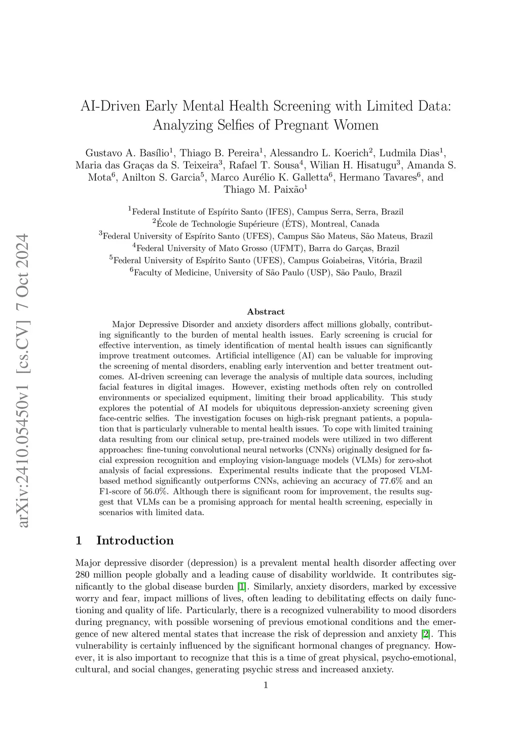 AI-Driven Early Mental Health Screening: Analyzing Selfies of Pregnant Women