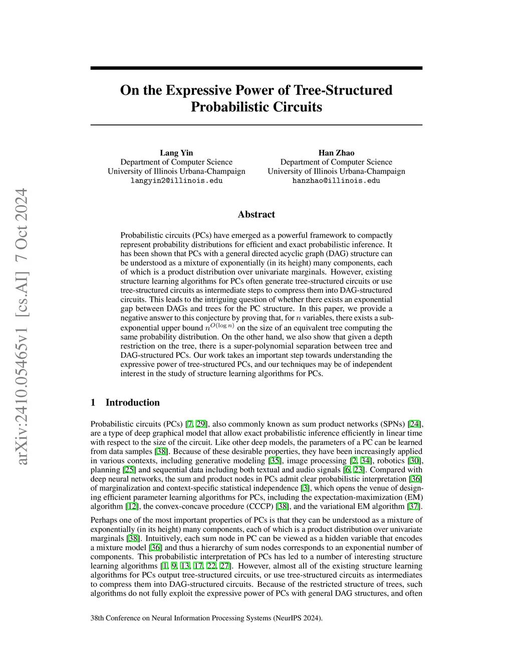 Probabilistic circuits (PCs) have emerged as a powerful framework to compactly represent probability distributions for efficient and exact probabilistic inference. It has been shown that PCs with a general directed acyclic graph (DAG) structure can be understood as a mixture of exponentially (in its height) many components, each of which is a product distribution over univariate marginals. However, existing structure learning algorithms for PCs often generate tree-structured circuits or use tree-structured circuits as intermediate steps to compress them into DAG-structured circuits. This leads to the intriguing question of whether there exists an exponential gap between DAGs and trees for the PC structure. In this paper, we provide a negative answer to this conjecture by proving that, for variables, there exists a quasi-polynomial upper bound on the size of an equivalent tree computing the same probability distribution. On the other hand, we also show that given a depth restriction on the tree, there is a super-polynomial separation between tree and DAG-structured PCs. Our work takes an important step towards understanding the expressive power of tree-structured PCs, and our techniques may be of independent interest in the study of structure learning algorithms for PCs.