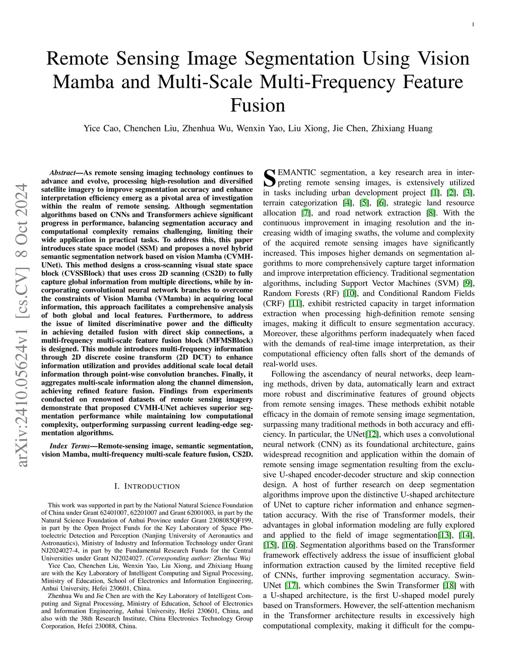 Remote Sensing Image Segmentation Using Vision Mamba and Multi-Scale